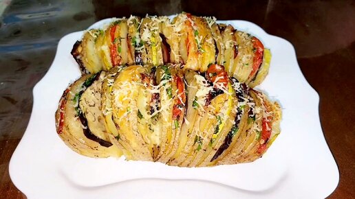 ЗАПЕЧЁНАЯ КАРТОШКА-ГАРМОШКА.🥔🍆🍅🥓