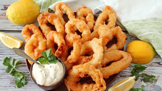 Получаются хрустящими снаружи и нежными внутри. Кольца кальмаров в пивном кляре.