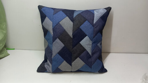 Сшила из джинсовой ткани лоскутную наволочку. Оригинальная подушка в технике косичка