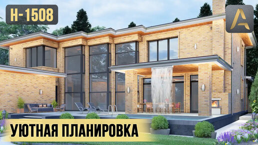 Уютный дом с функциональной планировкой. Обзор дома с гаражом, бассейном, террасой и вторым светом