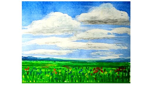 ☁☁☁Облака над полем. Как нарисовать пейзаж в смешанной технике.🖌😊✏️
