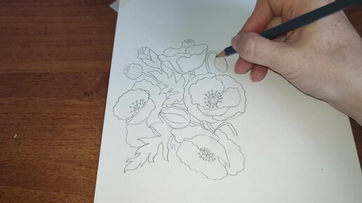 Маки. Цветы в вазе. Рисунок простым карандашом
