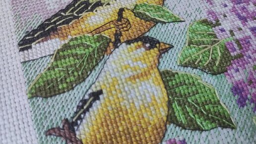 Dimensions 65153 Щенок и сирень. Готовая работа. Вышивка крестом