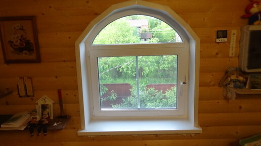 Смонтирую два арочных окна с отделкой откосов в дачном домике.