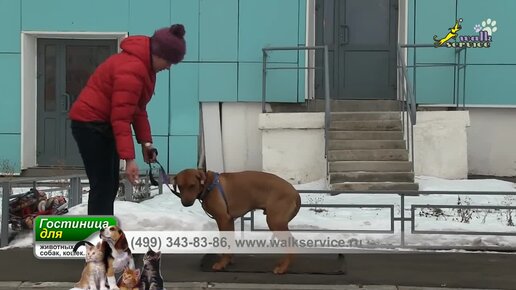 Работа инструктора дрессировщика, обучение хозяйки щенка риджбека дрессировке, команда стоять