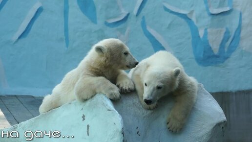 Медвежата ныряют и плавают на даче, пока у них в вольере наводят порядок.