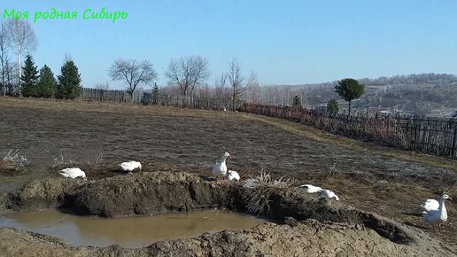 Гусей выпускаем всех в огород, пусть привыкают ходить вместе с инкубаторскими. (жизнь в деревне)