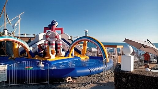 Ура! Пляжный сезон начался, погода идеальная - воздух +27, вода +22. Пляжи "Чайка-1" и "Огонёк-1" в Адлере, ранний вечер 8 июня 2023 года.