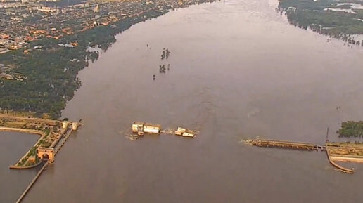 Масштаб разрушения: появились кадры Каховской ГЭС с вертолета