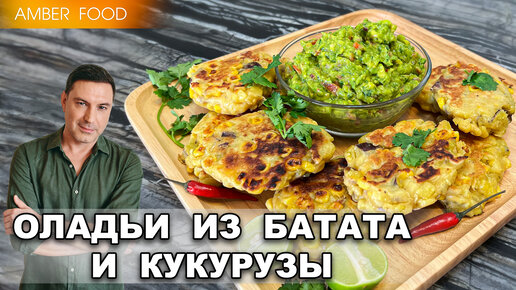 Вкусные оладьи на завтрак из батата и сладкой кукурузы.