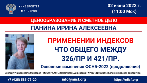 ВИДЕО. Панина И.А. Еще раз о применении индексов - что общего между 326/пр и 421/пр. Основные изменения ФСНБ-2022 (продолжение)