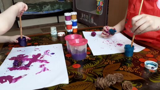 Роспись шишек гуашью. Нетрадиционные уроки рисования. Развитие мелкой моторики и разнообразие тактильных ощущений у детей. Подписывайтесь🤝