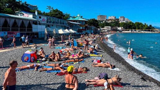 В Алуште 8 июня 2023 года битком набит туристами центральный пляж города. ТУРИСТЫ ПОЕХАЛИ В КРЫМ. Прошулка по набережной Алушты.