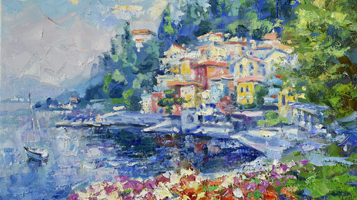 Уроки живописи видео. Как написать пейзаж маслом. Итальянский пейзаж "Озеро Комо"