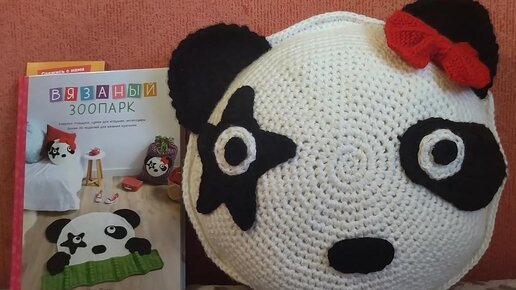 Изумительная подушка Панда, связанная крючком, по книге Иры Ротт "Вязаный зоопарк"