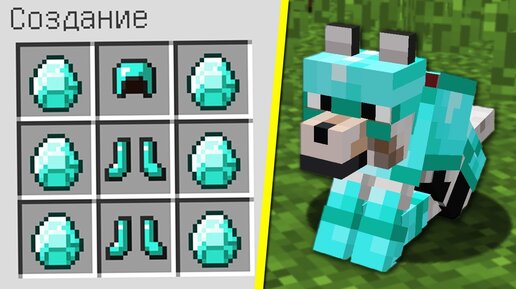КАК СКРАФТИТЬ АЛМАЗНУЮ БРОНЮ ДЛЯ СОБАКИ В МАЙНКРАФТЕ? МОД НА ДОСПЕХИ ДЛЯ ВОЛКА MINECRAFT