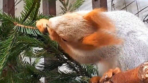 Что любят белочки кроме орехов. Очаровательная белка ест хвойные веточки.