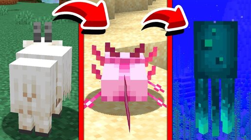 МАЙНКРАФТ, НО Я ПРЕВРАЩАЮСЬ В МОБОВ ИЗ MINECRAFT 1.17 АКСОЛОТЛЬ КОЗА СВЕТЯЩИЙСЯ СПРУТ