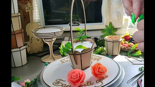Пробую что-то новое. Ассиметричный букет из мыла в корзинке.