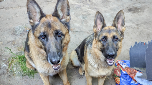 Немецкие овчарки показывают, как играть с водой и про Лису