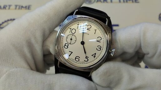 Марьяж Молния 3602 классика в стиле Panerai, корпус с гравировкой, чёрный напульсник ручной работы