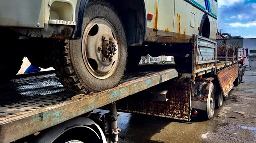 Такую погрузку вижу впервые! Потрачено два колеса и куча времени