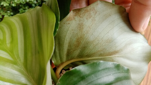 Как выглядит заражение паутинным клещом на калатее