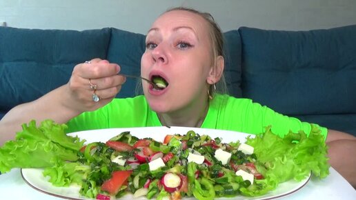 Зеленый летний сочный овощной салат с кабачками. Вкусно и просто. Мукбанг.
