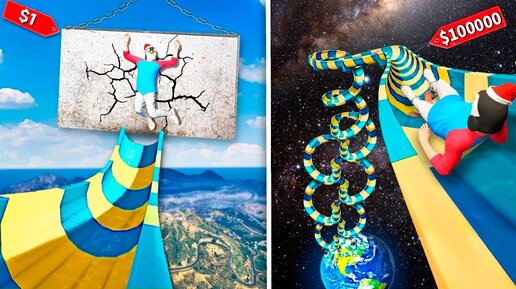 САМАЯ ДЕШЕВАЯ ВОДНАЯ ГОРКА ПРОТИВ САМОЙ ДОРОГОЙ В ГТА 5 ? - РЕАЛЬНАЯ ЖИЗНЬ В GTA 5