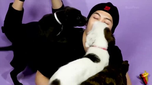 Джексон Ван (ex.GOT7) играет со щенками, отвечая на вопросы фанатов | Озвучка Riddle Space