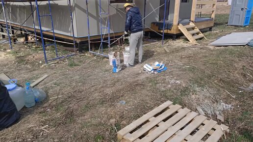 Перетяжка базового армирующего слоя тонким слоем клея Baumit ProConatact. СФТК Мокрый Фасад на каркасном доме, утепление ППС16ф 50мм