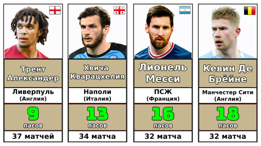 33 лучших игрока по голевым передачам в сезоне 2022-2023 (ТОП-5 лиг Европы)