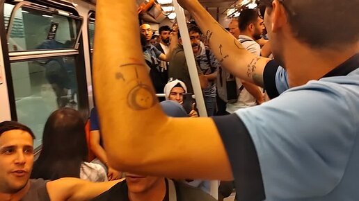Фанаты Манчестер весело едут в метро Стамбула на игру!