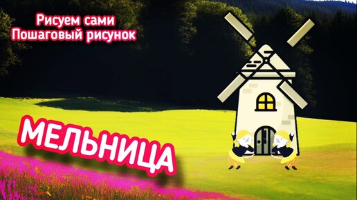 Мельница. Пошаговый рисунок, рисуем сами поэтапно.