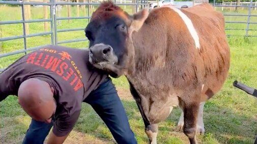 Слепая корова постоянно ластится и обнимает новых хозяев, подаривших ей вторую жизнь