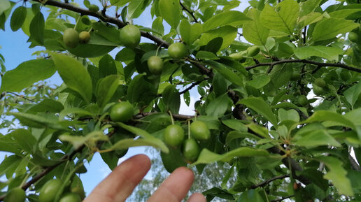 Плоды на деревьях в начале июня 2023 в нашем саду на даче в Подмосковье.