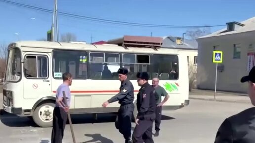 Алкаш против Автобуса, алкаш бьёт лопатой автобус!