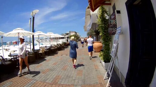 По Приморской набережной Сочи в жаркий летний день: пляжи готовы к работе, сезон прогулок в купальниках открыт