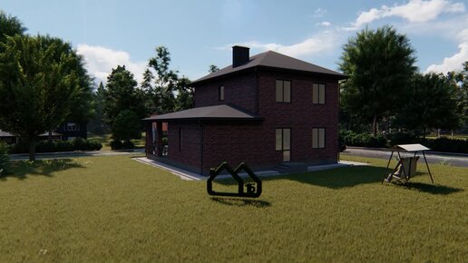 Вариант проекта ПМ2-111 двухэтажного дома площадью 110кв.м. с пристроенными банным комплексом и террасой с мангальной зоной