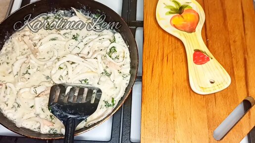 Быстрый ужин из трёх кальмаров в сметане с чесноком и зеленью