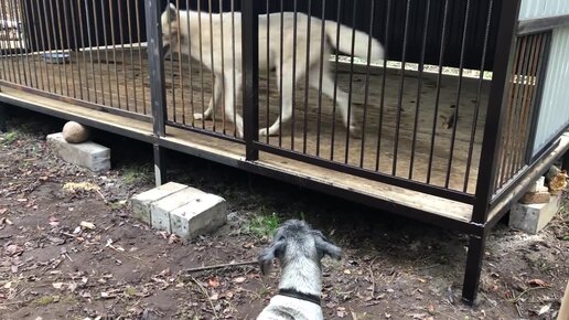 Волк vs Миттельшнауцер Арктическая волчица хочет сожрать собачку