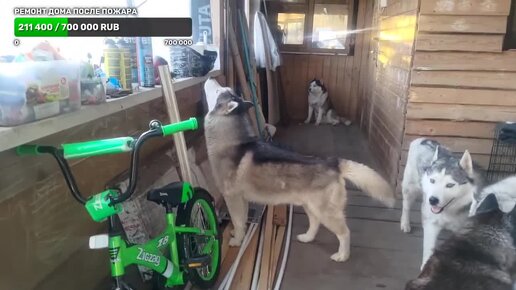 Кормим хитрых хаски и сушим дом после пожара