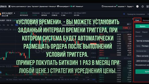 Gate.io спотовый рынок. Как открывать сделки на рынке спота. Айсберг. Купить. Продать. Обмен. Маркет. Стоп. Обратный ордер.