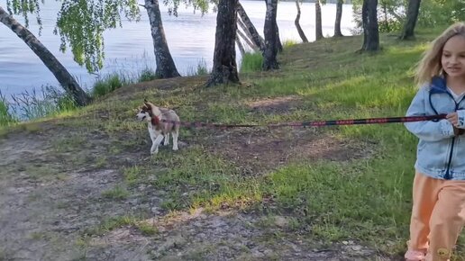 Хагрид и река🤣. Как прошло первое знакомство с водой "маленького" щенка хаски
