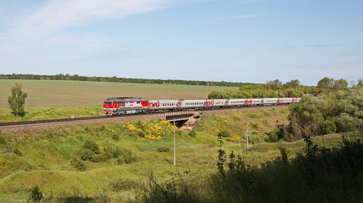 Тепловоз ТЭП70БС-185 с поездом №114 в тульских полях