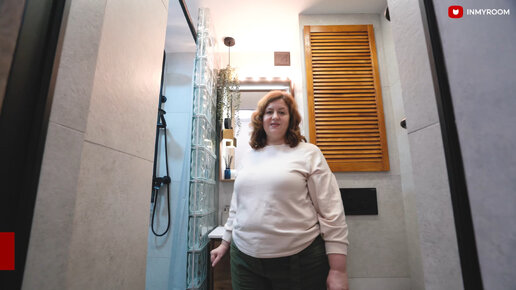 Восхитительный санузел 3,5 м2 в обычной панельке! Скрыли дверь, использовали стеклоблоки и продумали все нюансы🔥
