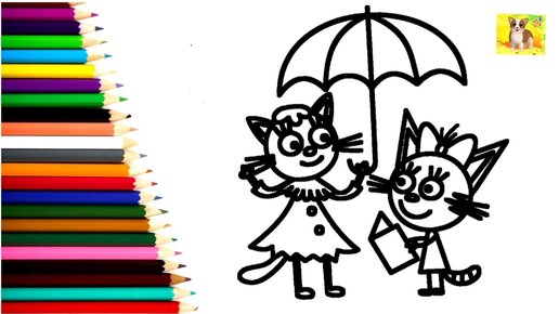 Как рисовать Три кота. Рисунок раскраска для детей Три кота. Рисую забавные милые рисунки для детей.