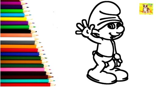 Как рисовать Смурфик. Рисунок раскраска для детей Смурфик Рисую забавные милые рисунки для детей.
