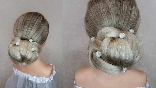 Красивый и объёмный пучок из волос на длинные волосы для выпускного вечера