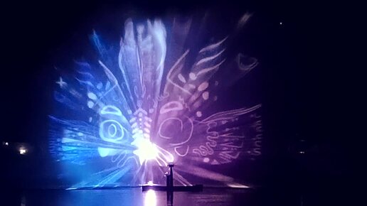 Видеопроекция на водный веерный экран в сильный ветер. Инсталляция "INSHOW".
